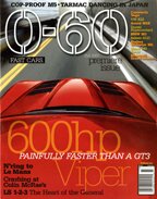 0-60, a quarterly publication, is a sleek, stylish magazine that is about one thing and one thing only: fast cars-old, wheter they be new, modified or stock.